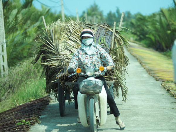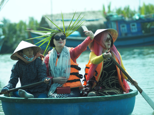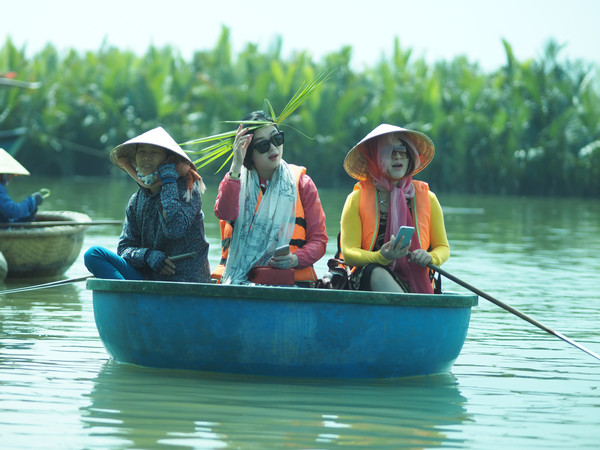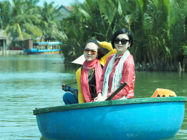 会安迦南岛的水椰林有大片野生水椰树和2公里水道,许多圆形小渔船像大簸箕,远看像小馒头。乘簸箕船在水椰林中像水中不倒翁一样旋转前进。船夫打开音箱,随着欢快越南歌曲和长桨,簸箕船上下翻飞,溅起浪花。船夫站在中央,技艺高超,得到掌声。船夫会随手编水椰树叶为各种帽子、戒指、项链、花等送给客人纪念。