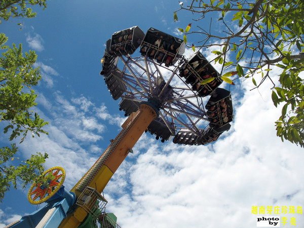 7月26日早上9点出发前往越南最大的游乐园——珍珠岛渡假园区,10多分钟到达珍珠岛跨海缆车入口,排队40多分钟后上了缆车,可怕的是缆车在行进途中停了将近15分钟,很可怕,大海就在下面,缆车基本是密封的,只有4个大概400*20cm的窗子,还在不停的晃,终于上岛后,阳光很