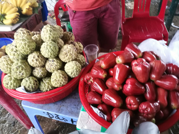 在通往停车场的路上有不少的流动摊贩,售卖着水果,比较贵