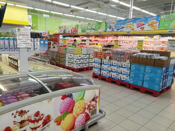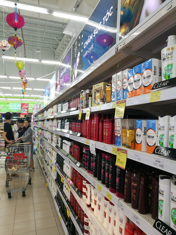购买化妆品在这个柜台先付款,银联可以刷,越南盾可以支付,美金、人民币不收