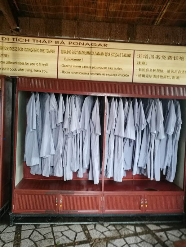 到达主殿去 朝拜可以换这样的灰色衣服,是免费的