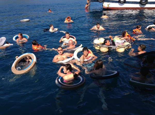 下午我订了第二天的芽庄四岛一日游,讨价还价到7美元,还包一顿午餐。 后来发现这7美金太值了!但需要注意的是在旅行社付的钱仅仅是船费和午餐(下水游泳不要钱),其他的活动都要另外付钱。