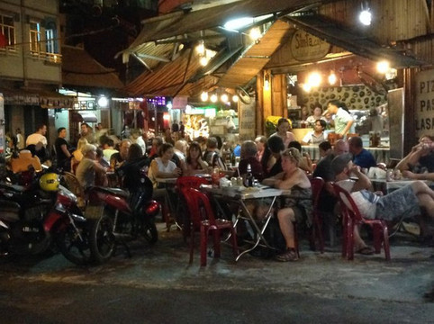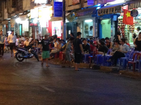 我的最爱,水果冰沙,这在老挝和柬埔寨很多,这里很少。这家水果冰沙的小摊子位于Bui Vien街,在范五老街区挺有名的,在一个小巷子的巷口,从外表看跟其他的水果冰沙没有多大区别,但是一到傍晚,成群的游客结伴来到这里喝冰沙,就连当地人也经常光顾这里买了带走。一杯2种以上水果的shake在18,000越南盾起,因水果不同,价格也会不同。