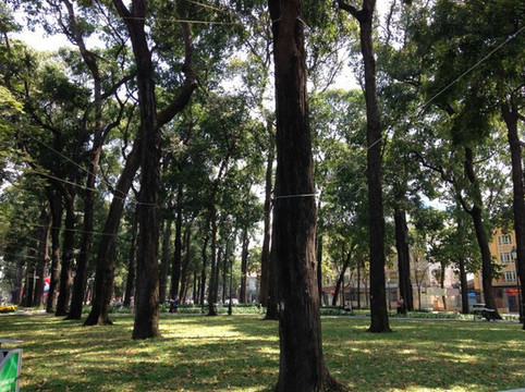 统一宫门前的绿地,高大的树木少说也有70-80年的历史,穿过这绿地前方就是王公圣母教堂。顺着统一宫门前的路一直走大约15分钟就来到了”战争遗迹博物馆 “