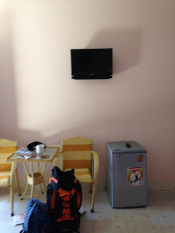 下午2点左右到了美奈,天气热得要命。下了车背着行李在骄阳下开始找客栈。没想到的是路边的全是豪华酒店,100多美金!马路的另一边是商店,怎么找呢?我突然灵机一动,为什么不问问已经入住的外国游客?我专门找穿得随便的年轻人问,因为他们都喜欢住客栈。果然,不一会儿就遇到了,他朝小山丘上指着说那里也许还有空房,谢过后,马上去了那里,谢天谢地,还真有空房!从15美金谈到了12美金,这是我的单人房,很干净。