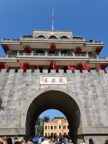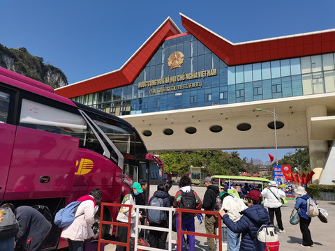出海关后,真切感受到了过年气氛,友谊关前好多游客。听见导游喊“你们到这里就算是出国了”。