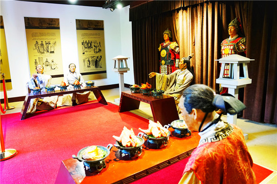 虞姬文化园里面,通过场景重现的方式,让我们更直观地感受到2000年前的鸿门宴。