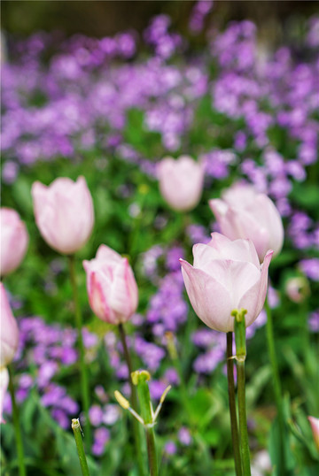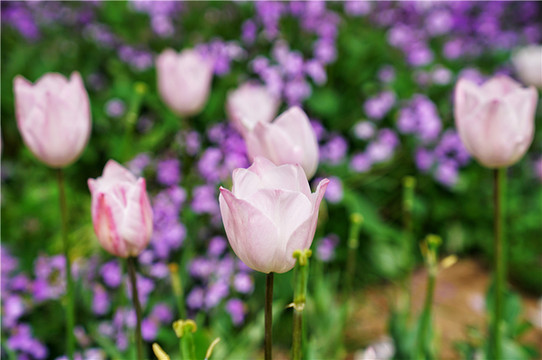 赏花时节有赏花的心情,是一件美好的事情,郁金香被称为世界花后,是土耳其、哈萨克斯坦、荷兰的国花。她的花语是博爱、体贴、高雅、富贵、能干、聪颖,属长日照花卉,性喜向阳、避风,经过园艺家长期的杂交栽培,全世界已拥有八千多个品种。除了郁金香,花期很久的二月兰,也是植物园的主角,紫色的小花朵,烂漫了整个春天。