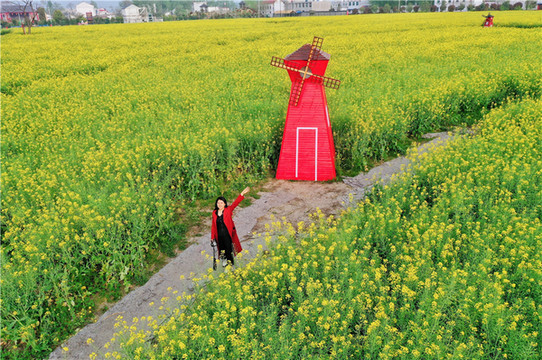 春风轻柔,循着淡淡的花香,走进关湖村,走进一个田园童话里,刚刚走到村头,就被这里清新淳朴的自然风景所吸引了,大风车静静地矗立在金黄色的油菜花田中,让我们在慢节奏中享受田园生活的乐趣。