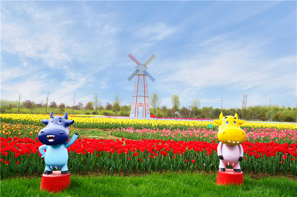 七彩郁金香,别出心裁的种植成好看的花型,和白色的大风车,组成了一道亮丽的风景,一般我们最喜爱的郁金香是红色黄色和紫色,漫步植物园,是否会想起小时候的童话故事?不知道爱丽丝如果走进这里,又会做一个怎样的梦呢?春天赏花,不管是大人还是小朋友都很欢喜。