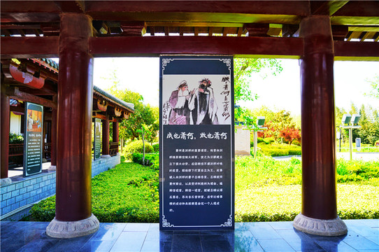绿意葱茏中的虞姬文化园,古色古香,整个虞姬文化园,占地300余亩,总投资5000万元,移步换景,通过文字和图片的形式,我们在这片古老的土地上追寻英雄和美人的故事。