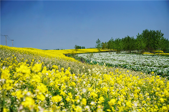 泗县的牡丹花不同于其他地方,盛开在河畔,一直铺陈到了天边,绿色的麦苗,黄色的油菜花还有白色的牡丹,这姹紫嫣红的色彩,让泗县的风景冲阿门了迷人的魅力。