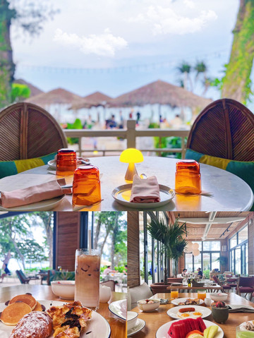 在海边餐厅享用活力早餐,东南亚园林美景加无敌海景,早餐仅仅热带水果和甜品就让我们有满满的幸福感。