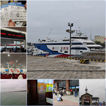 整理行李,洗洗算算,出门晚餐,公交车5站到达北海国际客运港(8元)