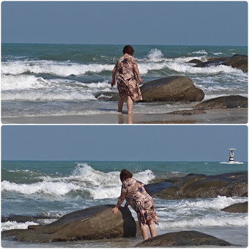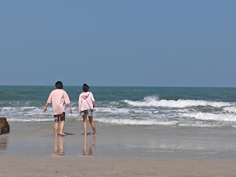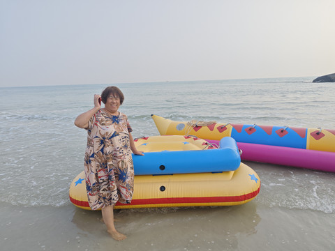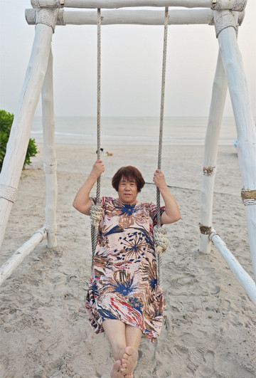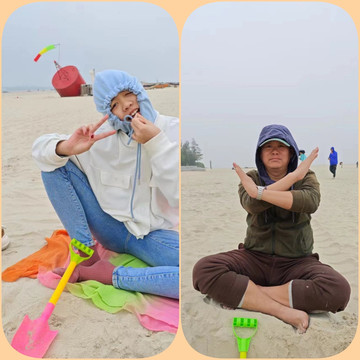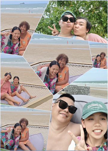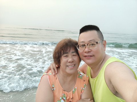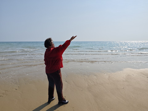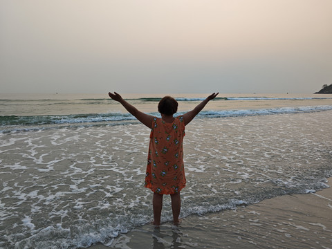 沙滩漫步,和老妈聊聊天