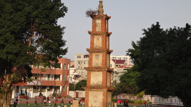 拜别龙山寺右转是成功西路,我们本来想参观一下矗立于安海成功中心小学校区里的郑成功读书处--“星塔”,正巧赶上放学时间,人多拥挤,我匆匆拍了一张照片就随着颜老师再赶往烈士纪念碑了。