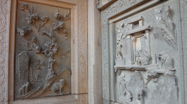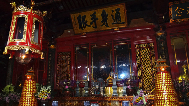 有关龙山寺的传说故事很多,我们下次单独聊一聊这些故事,今天我们只聊一聊如果你到龙山寺除了拜拜外,还应留意一下庙里的几个重要的看点,这样才能说不虚此行。龙山寺圆通宝殿前有一对八角形透雕辉绿岩盘龙柱,是龙山寺的镇寺之宝之一,龙柱雕刻于清道光年间,雕工细腻,神采飞扬,活灵活现,轻敲龙珠,左右龙珠分别会发出鼓和磬的声音,极为神奇。