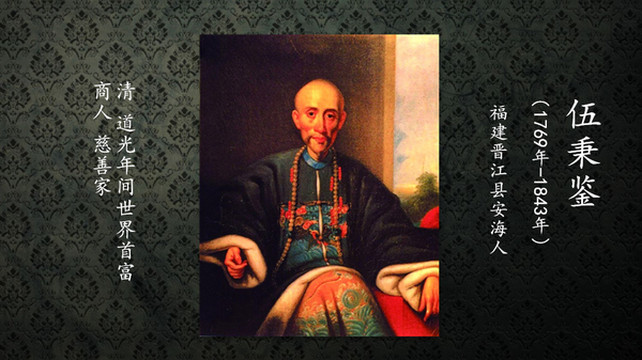 2001年《亚洲华尔街日报》曾评选过1000年来全球最富的50强,其中有六个中国人入选,没有马云、李嘉诚啊!这六哥儿们是:元代的成吉思汗、忽必烈、明代大太监刘瑾、清代大贪官和珅、民国时期的宋子文,还有一位就是伍秉鉴,他的资产达2600万两白银,这2600万两大概值现代多少元呢?我曾根据有关资料,以大米的价格来换算一两银子值现在多少元,其中清代中晚期一两银子的价值约为800元人民币,我们就以一两换800元来算吧!2600万两约为208亿元人民币,当时清政府一年的财政收入约为4000万两,而伍秉鉴的个人资产就相当于国家一年总收入的65%,称他为当时的世界首富一点都不过份。