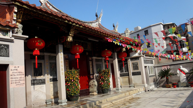 安平古庙原名“忠义庙”,始建于明万历初年,供奉关公、张飞和赵云,到了清顺治十八年古庙被毁。这一年是公元1661年,也就是郑成功收复台湾的那一年,朝廷为切断台湾郑成功反清复明的物资给养,从浙江、福建至广东沿海实施坚壁清野的“海禁迁界”政策,朝廷下令“无许片帆入海,违者置重典”,沿海民房、庙宇被尽数捣毁,比现在的强拆还厉害,居民被强迁,有资料说是强迁30里,有的说是50里,还有写200里的。泉州因是郑成功的故乡,中央特别重视,损失也最严重,我们如果聊起闽南乡土历史都会反复提及“海禁迁界”这件事。