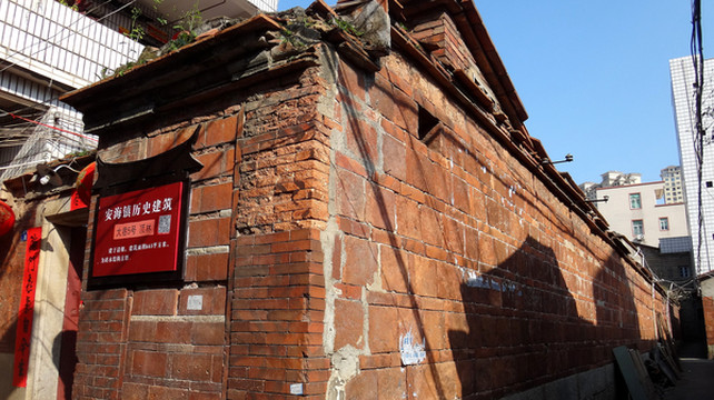 从成功西路139号拐进兴胜社区坊皮巷,这不起眼的小巷却曾经蕴育过中国革命的种子。1945年4月在坊皮巷7号的一栋南洋式平房里曾召开过中共泉州中心县委第一次干部会议,安海人称这栋洋房叫“十九间”。2007年被列为晋江市文物保护单位。