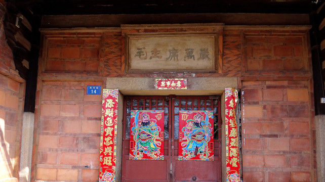 离开陈清机旧居,来到西河境14号,这幢建造于清代的大厝最能体现闽南“出砖入石”的建筑特色,本想进去看看,门却也紧闭着,门匾上的堂号用隶书写着“毛主席万岁”,让人看不出是哪一姓氏的人家,从中却可以看出文革时“破四旧”留下的痕迹。