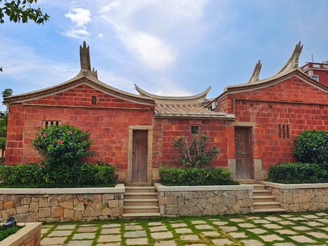 “红砖白石双坡曲,出砖入石燕尾脊,雕梁画栋皇宫式”这是对闽南特色红砖建筑的表述。