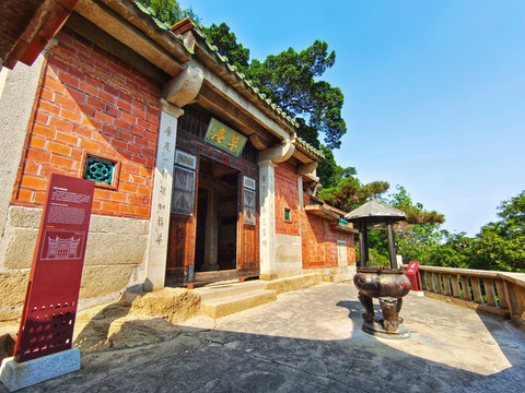 草庵规模不大但造型别致,其主体建筑为石砌歇山式屋顶,内部结构采用石柱石梁。前面拜亭,顶上起造中间高、两边低的三川脊,脊滩燕尾高翘,是典型的南小寺庙建筑。沿路往上爬几级阶,便可闻到阵阵檀香,世界上唯一完好保存的摩尼光佛造像就坐落于供奉香火的石室之中。