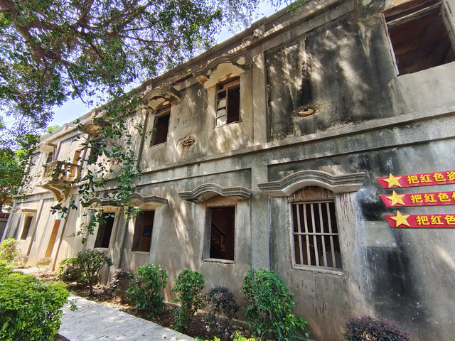 “八二三”炮战遗址毓秀楼,1931年由旅菲华侨吴天敬修建的一栋中西合璧的二层小洋楼。炮战中,成为西线海岸炮兵第150连临时战士指挥所。曾被六发炮弹击中,神奇的是炮弹都没有爆炸,好似神灵护佑。