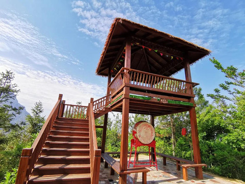 观景楼下方还有一个大鼓,用力一敲,惊起一林飞鸟,整座山林也从晨鼓中醒来。