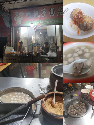 芋圆的味道真是颠覆想象,可见的是撒了白糖、花生粉,还放了点番茄酱,看上去像了汤团,咬上去皮有点像藕粉丸子,QQ的,馅竟然是肉,于是就是各种甜甜咸咸的五味杂陈,味道一言难尽,吃不惯。