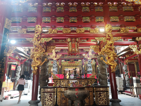庙虽不大,但是香火很旺,墙上和柱子的雕花很华丽。