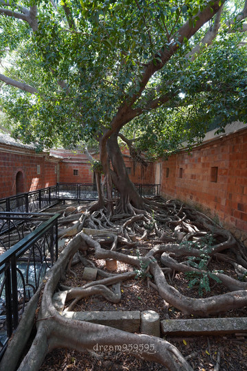 一走进咖啡馆就有一棵榕树,上面挂了很多许愿排,不要误会,那可不是最大的那颗榕树,最大的那颗在院子里,盘根错节,根系布满整个院落。