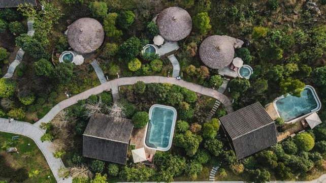 泡温泉一直是我对冬天的仪式感,而且温泉也是贵州的一大特色。从小镇出来,我便直奔六盘水落别温泉度假区,想要尽情地缓解旅途的劳累。落别龙井生态温泉度假区,坐落于素有"中国凉都"美誉的贵州省六盘水市六枝特区落别乡龙井村,景区内奇山丽水,风景秀美,整个景区利用原有自然生态资源,绿植覆盖面积可达90%以上。