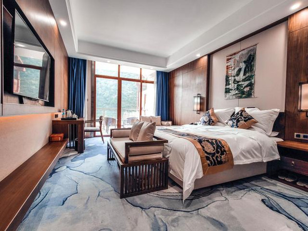 神清气爽地从落别温泉度假区出来,就驱车前往今晚入住的六盘水六枝龙井温泉度假区·瀑布源酒店。酒店名称即瀑布的源头,龙井泉水丰富,清澈冰凉无污染,酒店就坐落在四面环山、果树围绕的景区内,奇山丽水,风景秀美,全年平均气温19度。 配套设施旅居房,距离养生温泉、水上乐园、儿童乐园均500米,步行可达。这里距举世闻名的黄果树瀑布约20公里,距黄果树安顺机场也仅有30分钟车程。