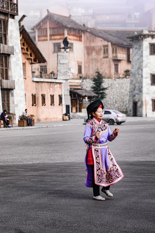 走进寨子,眼光在每个角落逗留着,沿着青石街两旁,10个组合院落由朴素而不失精巧的民居构成,层层叠放,相互连通,土墙、茅草、彝族图腾等传统彝族建筑风格完美地融合到现代建筑中,充分展示出了彝族绚烂文化特色。彝族特色的服装、装饰品填满了小镇的色彩,彝族姑娘和小伙子们更为这座小镇增添了浪漫的气息,让人感受到这座小镇的浓郁风情。