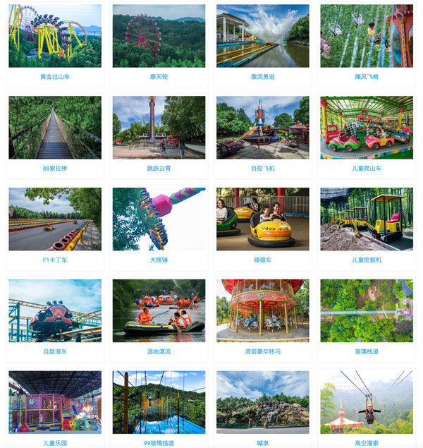 【运动世界】有户外拓展、森林骑马、F1卡丁车、真人CS野战、攀岩、高空溜索、湿地漂流等各类运动项目50多种,以及大型游乐场—— 中南 欢乐世界和儿童乐园共21个项目组成,游客可在此体验极致的欢乐与刺激。