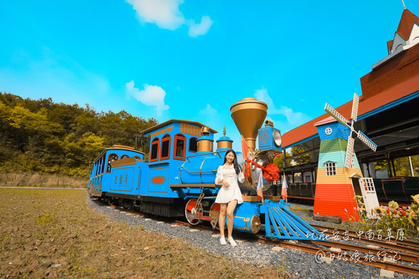 上午我们在【 中南欧洲 牧场】乘坐“ 伦敦 号”欧式小火车,观光铁路环线总长3.86千米,全程运行时间大概35分钟。我们穿梭于 欧洲 牧场,途径 法国 、 英国 、 荷兰 、 瑞士 等十多个站点,每站都融入了当地国家的特色元素。半封闭的车厢,方便观景拍照,中途站点停靠的时候可以下车喂动物。饱览绿水青山的同时还与动物们亲密互动,萌萌的羊驼和奶牛都是拍照打卡的好素材;(我们乘坐的是绿色的 伦敦 号,另一列蓝色的是 巴黎 号)