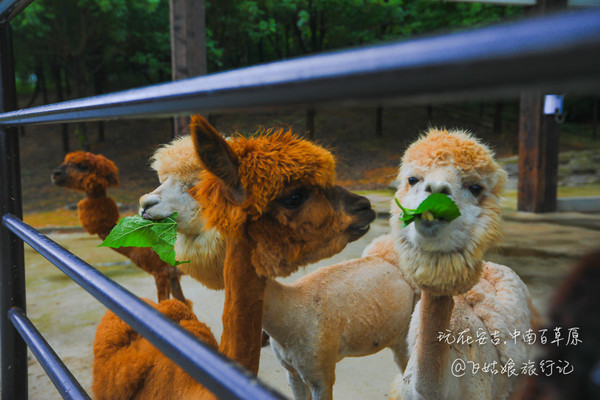 中南 百草原的动物世界非常大,动物种类也很多,一路走走停停。手里篮子里还有很多胡萝卜,于是去长颈鹿生活区