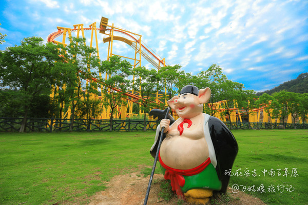 黄金过山车和摩天轮之间还有二师兄雕塑,是不是因为来这里的小姐姐特别多,八戒想来看看美女?