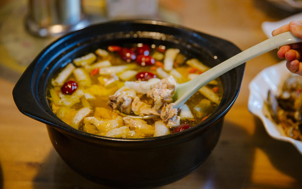 大多的美味佳肴都是取自山中的新鲜有机食材,山中自养土鸭、土鸡、清水鱼、各种野菜应有尽有,还原了食材本身的味道,可以说是色香味俱全!