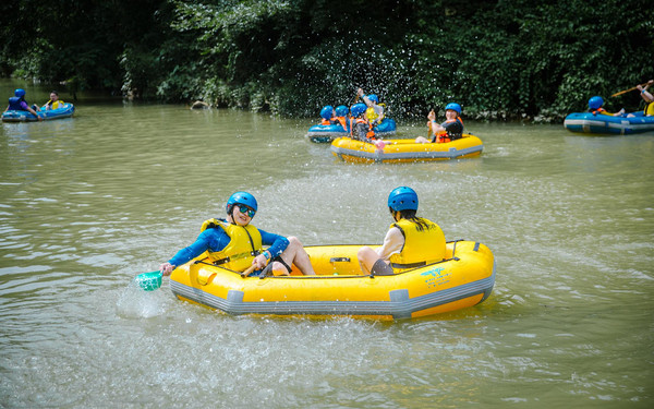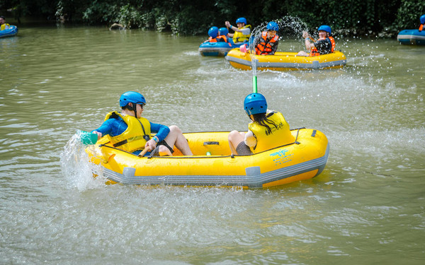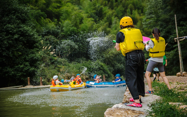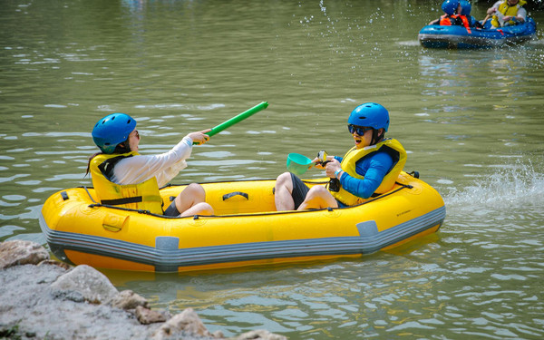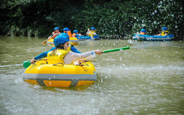 不过你可别以为缓滩区只是休息的地方,漂流的保留剧目打水战终于要隆重登场啦!这里的河水质地清莹,流速有急有缓,简直是打水仗的人间天堂!