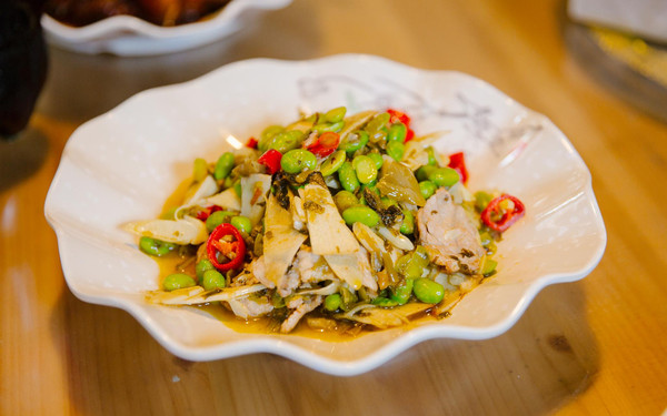 而安吉的美食很多,大多都是新鲜而味美的土菜,而我们此行因为宿在农家,早就听老板娘说这里的大厨(原来可是在杭州五星级酒店做大厨的哦)做菜很好吃,旅途中的一日三餐基本上都在民宿里解决!