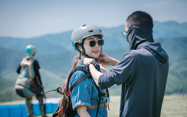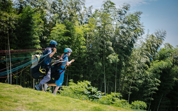 早早的一群小伙伴们就乘车前往鸬鸟国家滑翔伞飞行营地,飞行体验是教练使用双人滑翔伞带飞体验者,所以完全不用担心自己不会操控的哦,在蓝天白云的相衬下乘着滑翔伞从高处一跃而下,一起享受“脱离”地球引力带来的宁静与美妙吧!