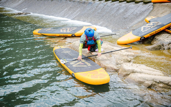 待大伙上板,身体先调整到最佳状态,从跪着开始简单练习了几次,也都能轻松找到平衡感并站起来了!乘风破浪任你划,一场水上酷潮新体验之旅也即刻开始!