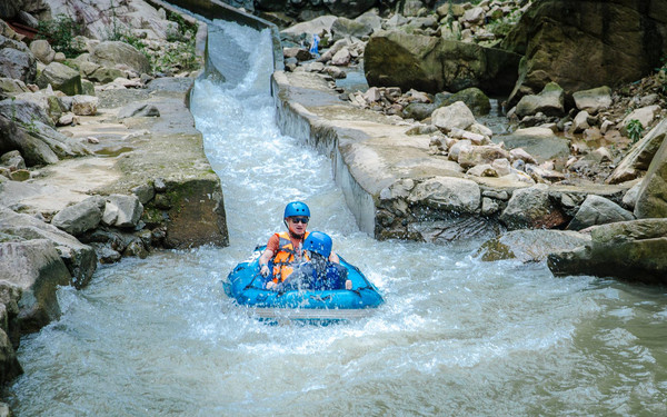 一路漂荡、一路欢叫,穿丛林、越河谷、在移动的视角下欣赏沿途美景,在林海花潮中顺流而下,沿途有许多惊险的弯道点,远处看起来似乎平平无奇,只是一道蜿蜒的溪流,醒目的“抓紧扶手”标语却暗示你事情并没有这么简单。坐上的时候划艇似乎变身成了过山车和碰碰车的合体版,巨大的垂直落差让你永远不会小看地心引力的加速度。