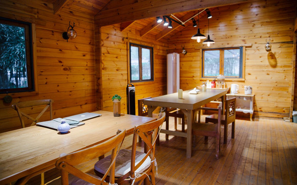 整体的风格偏童话小清新,是那种让人看一眼就喜欢上的明媚黄和象牙白。带着松香的木屋、树木掩映的大草坪,纯白色的餐桌椅,淡泊坊简直把法式浪漫演绎地淋漓尽致。