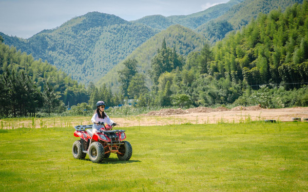 开着ATV,越过前方一个个或浅或深的坑洼,或低或高的土丘,紧紧拽着车上的把手,感觉车子的颠簸,在跨越土坡时身体猛地向上飞跃,展翅高飞、乘风而起的感觉,也太拉风啦!如果你的姐妹也有想要撒野的冲动,那就快来一起骑上会“蹦”起来的车,一起穿梭于竹林中,感受大自然的神奇吧。