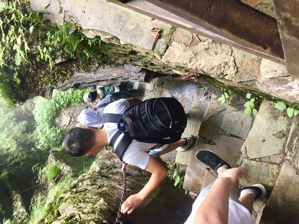 初次登红云金顶的游客,应该完全想不到,半腰红云顶,会出现严重拥堵的情况,半山腰栈道因环境特殊性,在自然鬼斧神工的基础上,开山工巧夺天工凿出一条窄窄的登山步道,最大特点就是险峻,陡峭,狭窄!全程只能一个人手脚并用才能通过,同时垂直度接近80度!登上的人想拍照留恋,下面的人着急等候,一来二去时间推移,拥堵是必然!!!最终在还算顺利的道路上,成功登顶!!