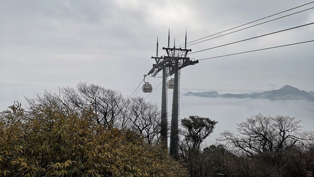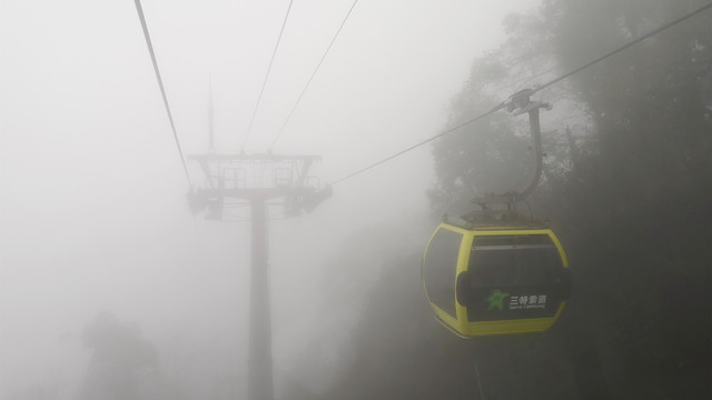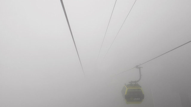 今天早上大雾,还好没有下雨,索道一路上行,一片雾茫茫 。