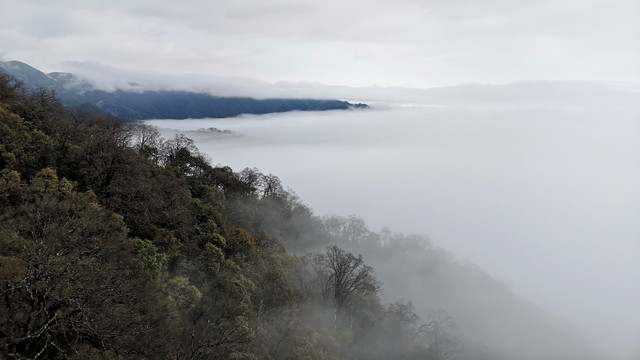 上至山顶,得见云海连绵。